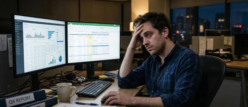 Se você pudesse ver o que seu analista financeiro faz na segunda-feira, veria ele alternando telas. CRM aberto, ERP do lado, planilha no meio. Dados que precisam sair de um lugar e ir para outro. Cerca de 1.000 vezes por semana. 52 mil vezes por ano. E isso é só o trabalho de uma pessoa.